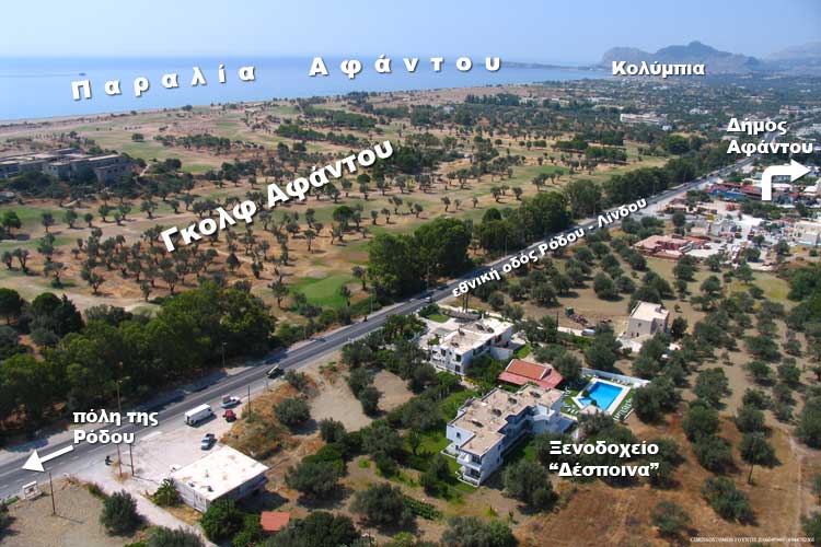 Ρόδος: Ξενοδοχείο Δέσποινα: Πληροφορίες για την τοποθεσία του ξενοδοχείου στο νησί